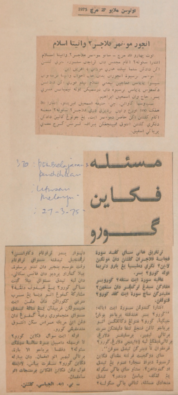 Utusan Malaysia (1975) Masalah pakaian guru. Utusan Malaysia. |