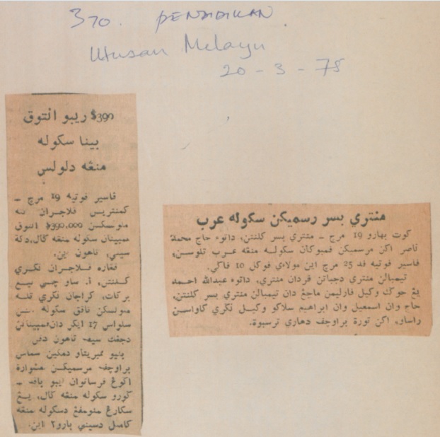 Utusan Malaysia (1975) Menteri besar rasmikan sekolah Arab. Utusan Malaysia. |