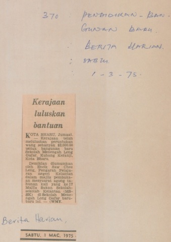 Berita Harian (1975) Kerajaan luluskan bantuan. Berita Harian. |