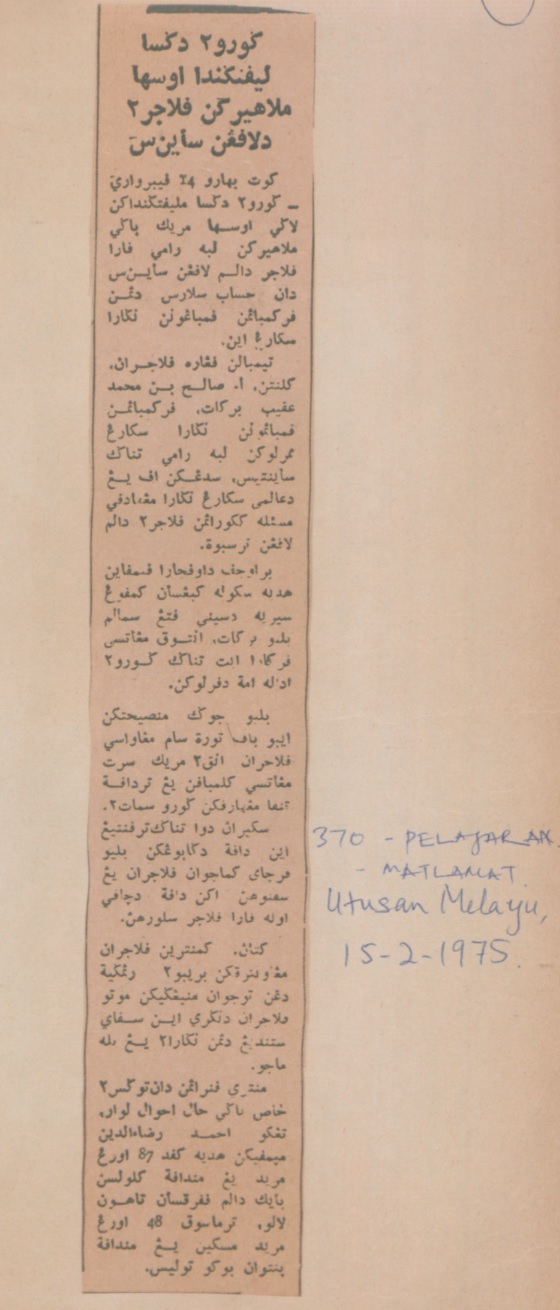 Utusan Malaysia (1975) Guru2 digesa lipat ganda usaha melahirkan pelajar2 dilapangan sains. Utusan Malaysia. |