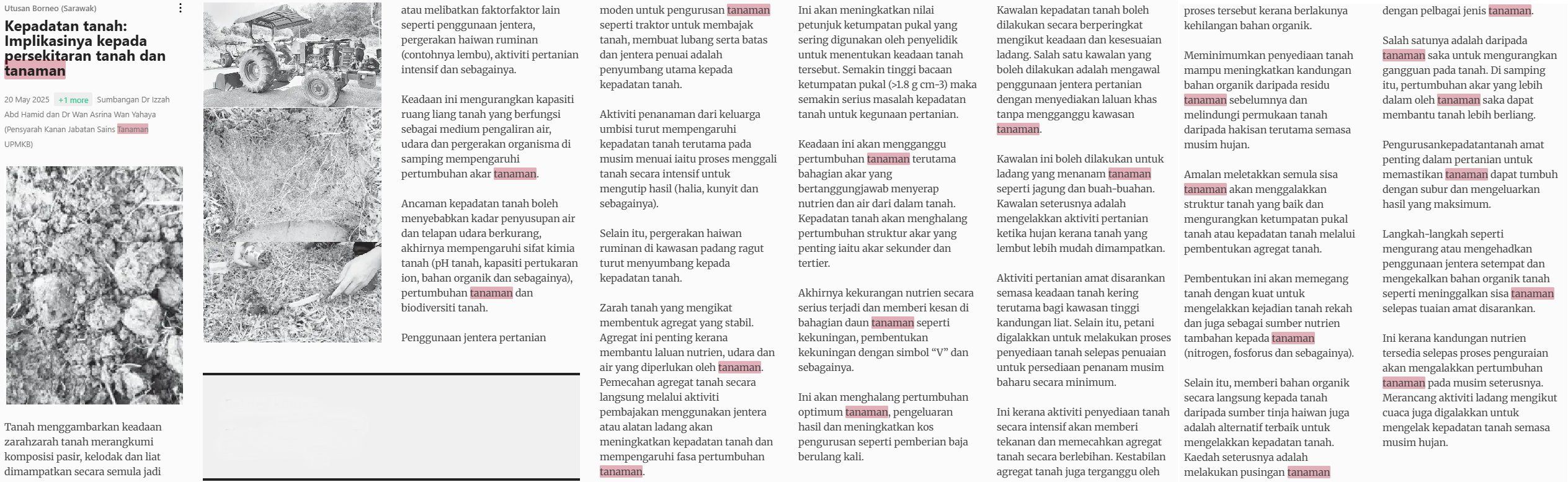 Dr Izzah Abd Hamid and Dr Wan Asrina Wan Yahaya (2025) Kepadatan tanah: Implikasinya pada persekitaran tanah dan tanaman. Utusan Borneo (Sarawak). |