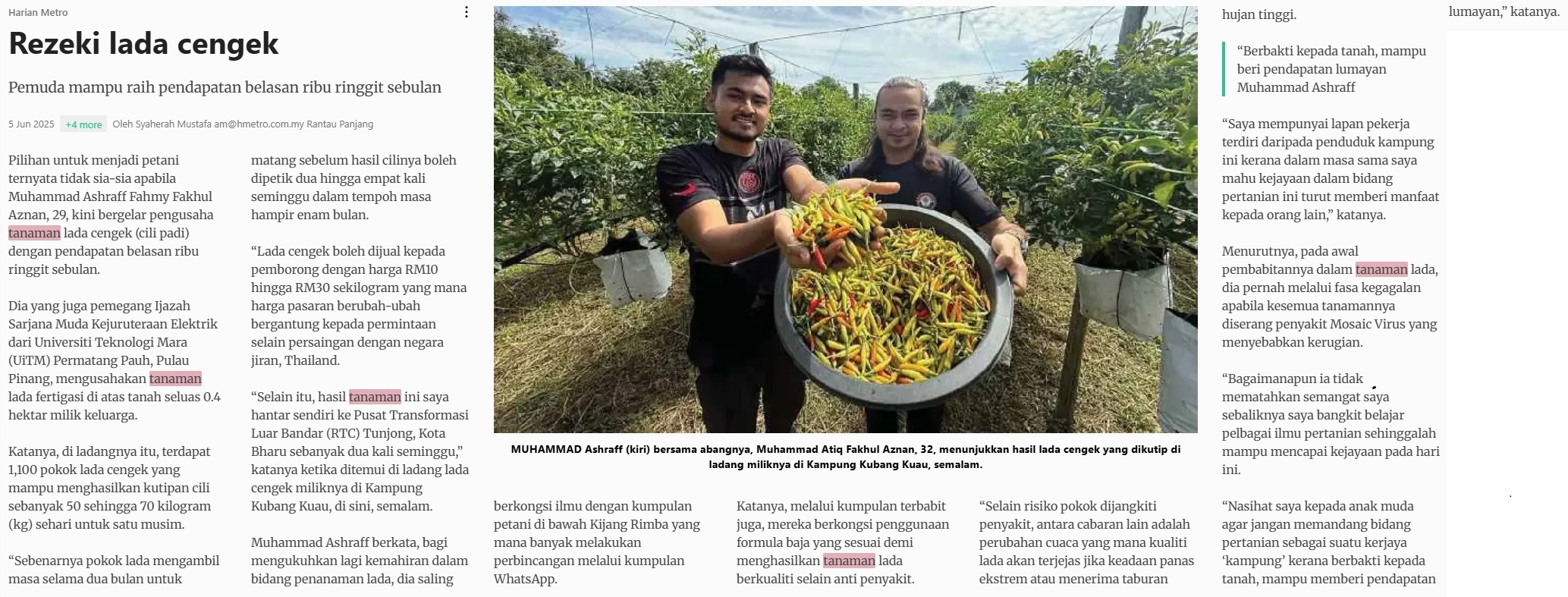 Syaherah Mustafa (2025) Rezeki lada cengek. Harian Metro. |