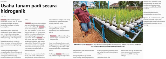 Harian Metro (2025) Usaha tanam padi secara hidroganik. Harian Metro. |