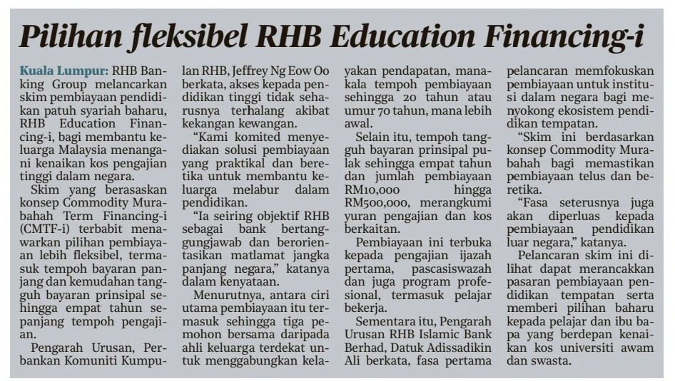 Bernama (2025) Pilihan fleksibel RHB Education Financing-i. Harian Metro. |