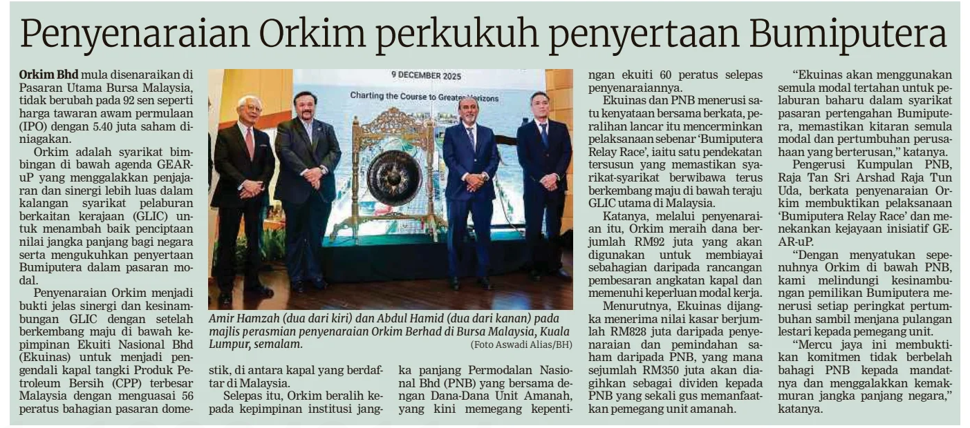 Bernama (2025) Penyenaraian Orkim perkukuh penyertaan Bumiputera. Berita Harian. |