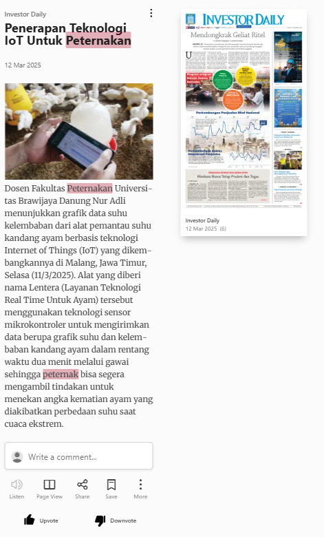 Bernama (2025) Penerapan teknologi IoT untuk peternakan. Investor Daily. |