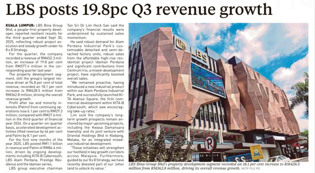 S. Birruntha (2025) LBS posts 19.8pc Q3 revenue growth. New Straits Times. |
