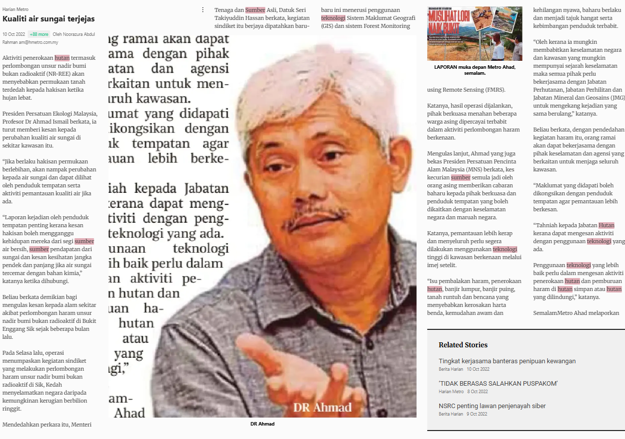 Noorazura Abdul Rahman (2022) Kualiti air sungai terjejas. Harian Metro. |