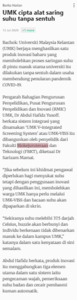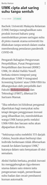 Bernama (2020) UMK cipta alat saring suhu tanpa sentuh. Berita Harian. |