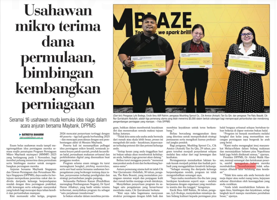 Batrisyia Baharim (2025) Usahawan mikro terima dana permulaan, bimbingan kembangkan perniagaan. Berita Harian. |