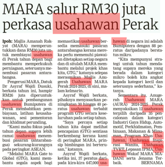 Bernama (2025) MARA salur RM30 juta perkasa usahawan Perak. Berita Harian. |