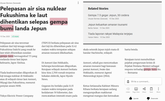 Bernama (2025) Pelepasan Air Sisa Nuklear Fukushima Ke Laut Dihentikan Selepas Gempa Bumi Landa Jepun. Utusan Bormneo (Sarawak). |