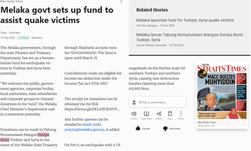 Bernama (2023) Melaka Govt Sets Up Fund To Assist Quake Victims. New Straits Times. |