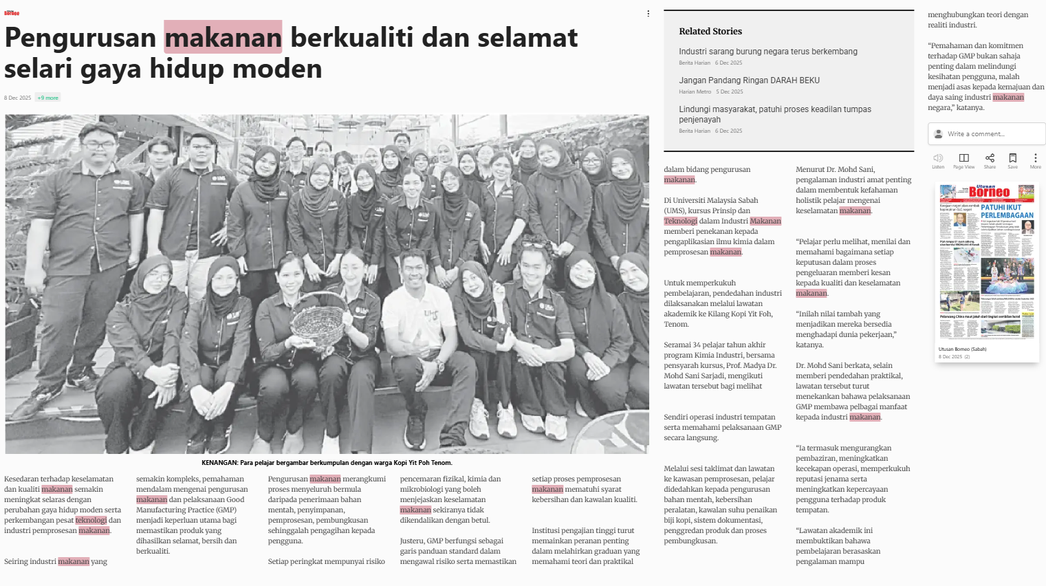 Bernama (2025) Pengurusan makanan berkualiti dan selamat selari gaya hidup moden. Utusan Borneo. |