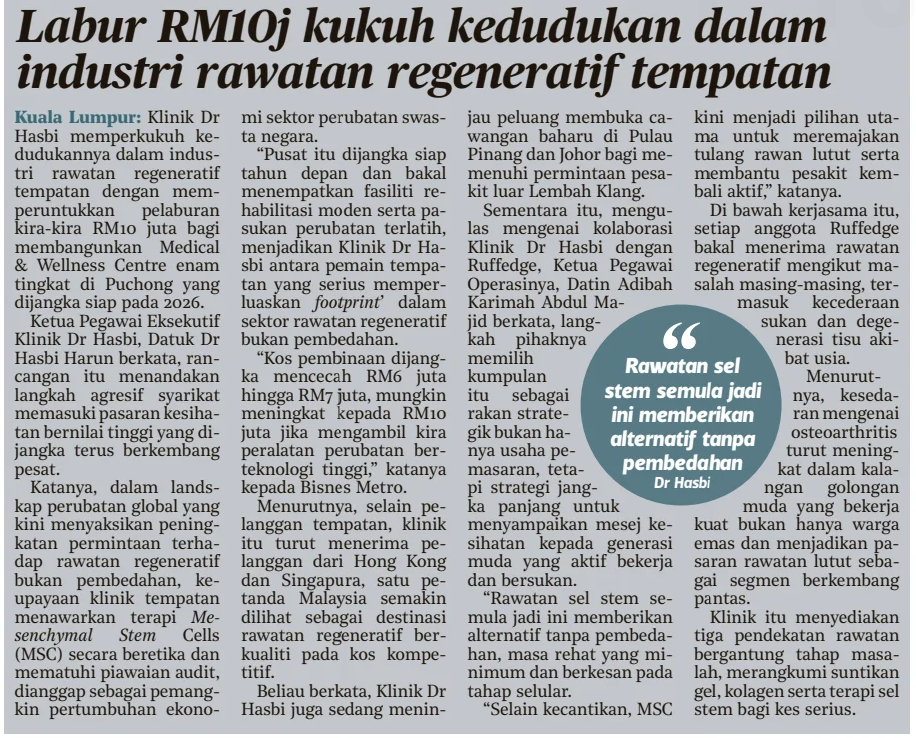 Bernama (2025) Labur RM10j kukuh kedudukan dalam industri rawatan regeneratif tempatan. Harian Metro. |
