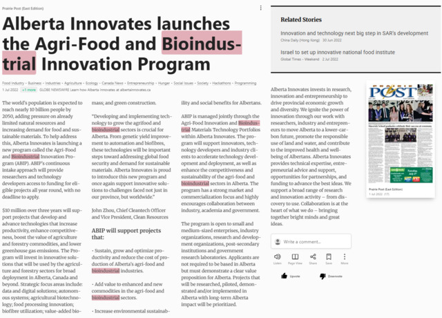 Bernama (2022) Alberta Innovates launches the Agri-Food and Bioindustrial Innovation Program. Globe Newswire. |