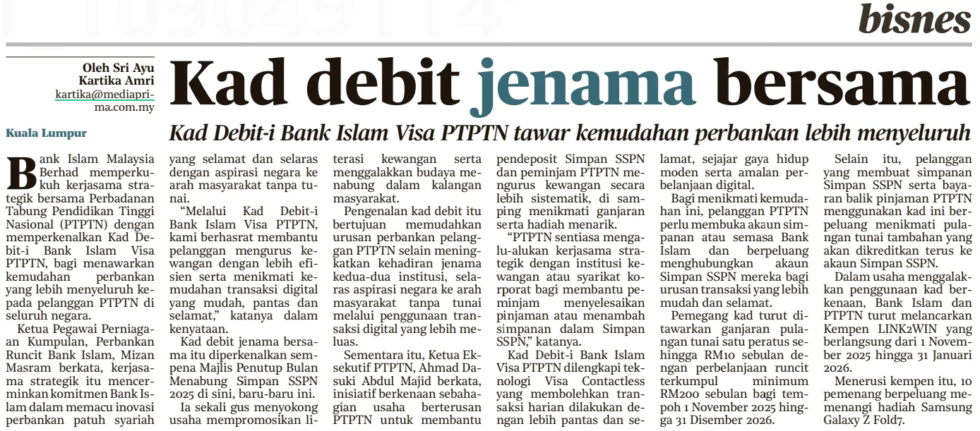 Sri Ayu Kartika Amri (2025) Kad Debit-i Bank Islam Visa PTPTN tawar kemudahan perbankan lebih menyeluruh. Harian Metro. |