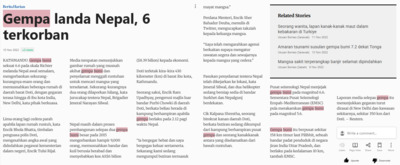 Bernama (2022) Gempa Landa Nepal, 6 Terkorban. Berita Harian. |