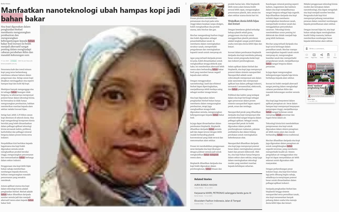 Nurain Nasrudin (2025) Manfaatkan nanoteknologi ubah hampas kopi jadi bahan bakar. Berita Harian. |