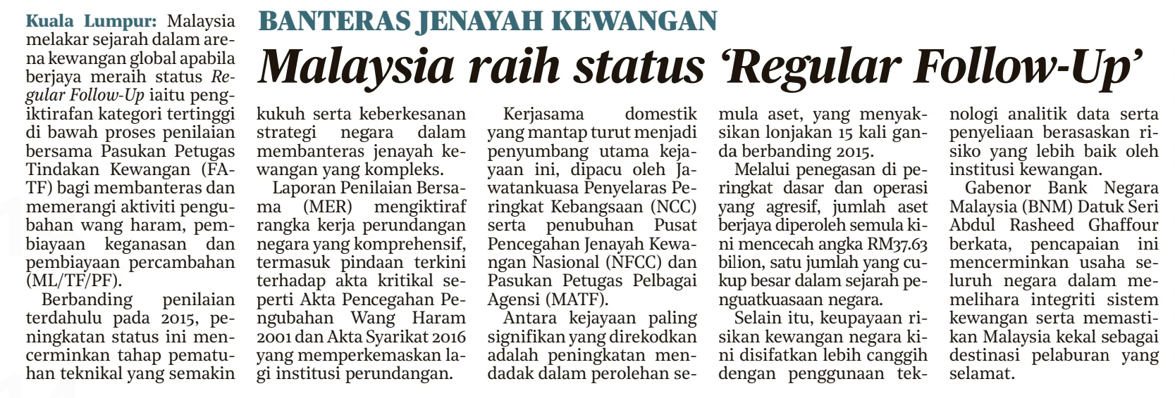Bernama (2025) Malaysia raih status ‘Regular Follow-Up’. Harian Metro. |