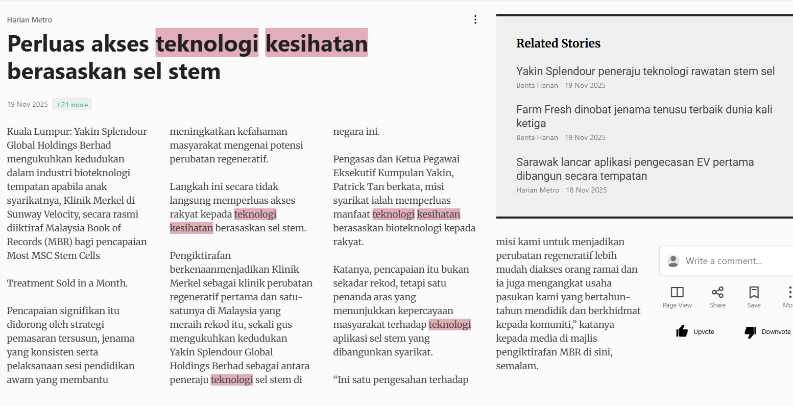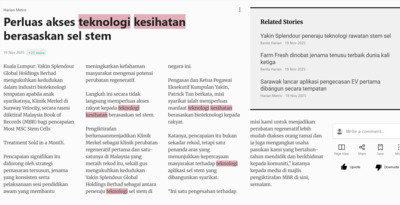 Bernama (2025) Perluas akses teknologi kesihatan berasaskan sel stem. Harian Metro. |