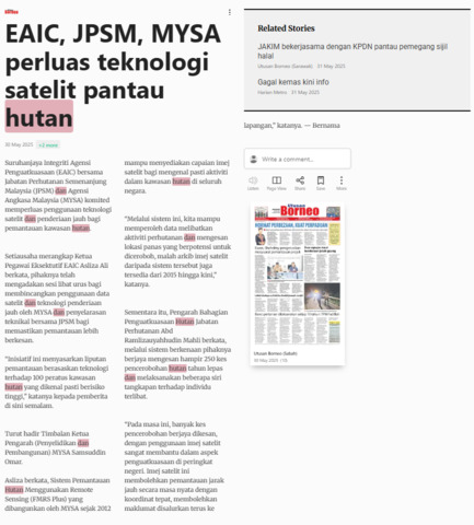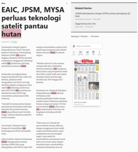 Bernama (2025) EAIC, JPSM, MYSA perluas teknologi satelit pantau hutan. Utusan Borneo (Sabah). |