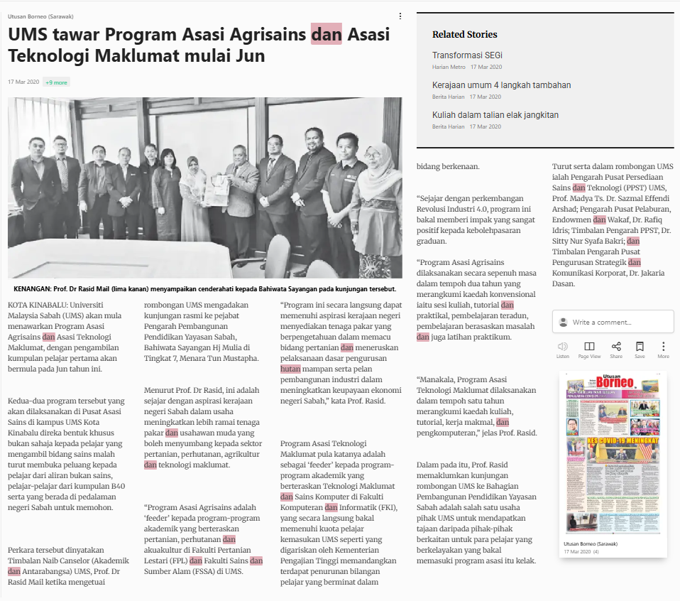 Bernama (2020) UMS tawar Program Asasi Agrisains dan Asasi Teknologi Maklumat mulai Jun. Utusan Borneo (Sarawak). |