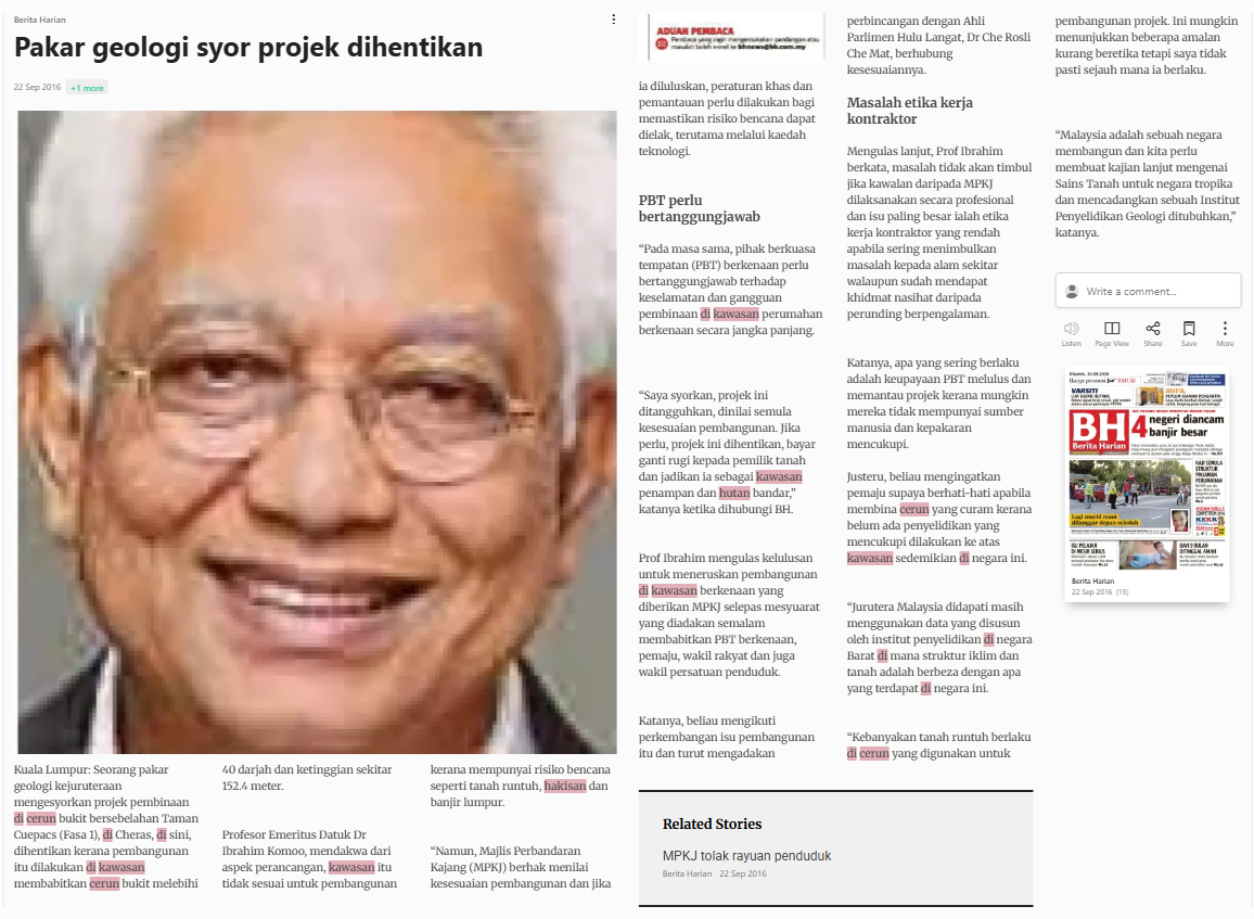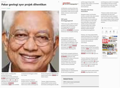 Bernama (2016) Pakar geologi syor projek dihentikan. Berita Harian. |