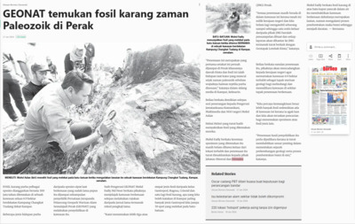 Bernama (2024) GEONAT temukan fosil karang zaman Paleozoik di Perak. Utusan Borneo (Sarawak). |