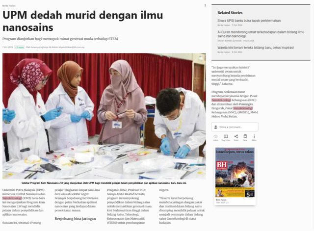 Ameesya Aghniya Ab Rahim (2024) UPM dedah murid dengan ilmu nanosains. Berita Harian. |