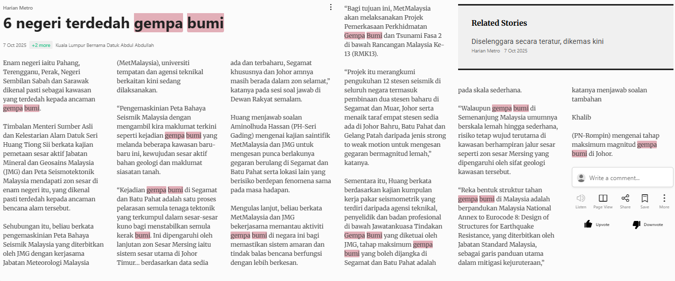 Datuk Abdul Abdullah (2025) 6 Negeri Terdedah Gempa Bumi. Harian Metro. |