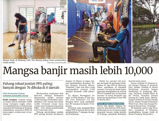 Nurhanim Osman (2025) Mangsa Banjir Masih Lebih 10,000. Berita Harian. |