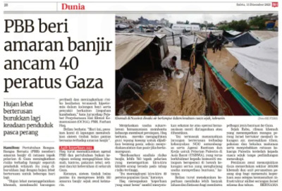 Hamilton (2025) PBB beri amaran banjir ancam 40 peratus Gaza. Berita Harian. |