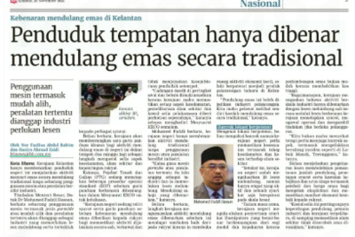 Nor Fazlina Abdul Rahim and Hazira Ahmad Zaidi (2025) Penduduk Tempatan Hanya Dibenar Mendulang Emas Secara Tradisional. Berita Harian. |