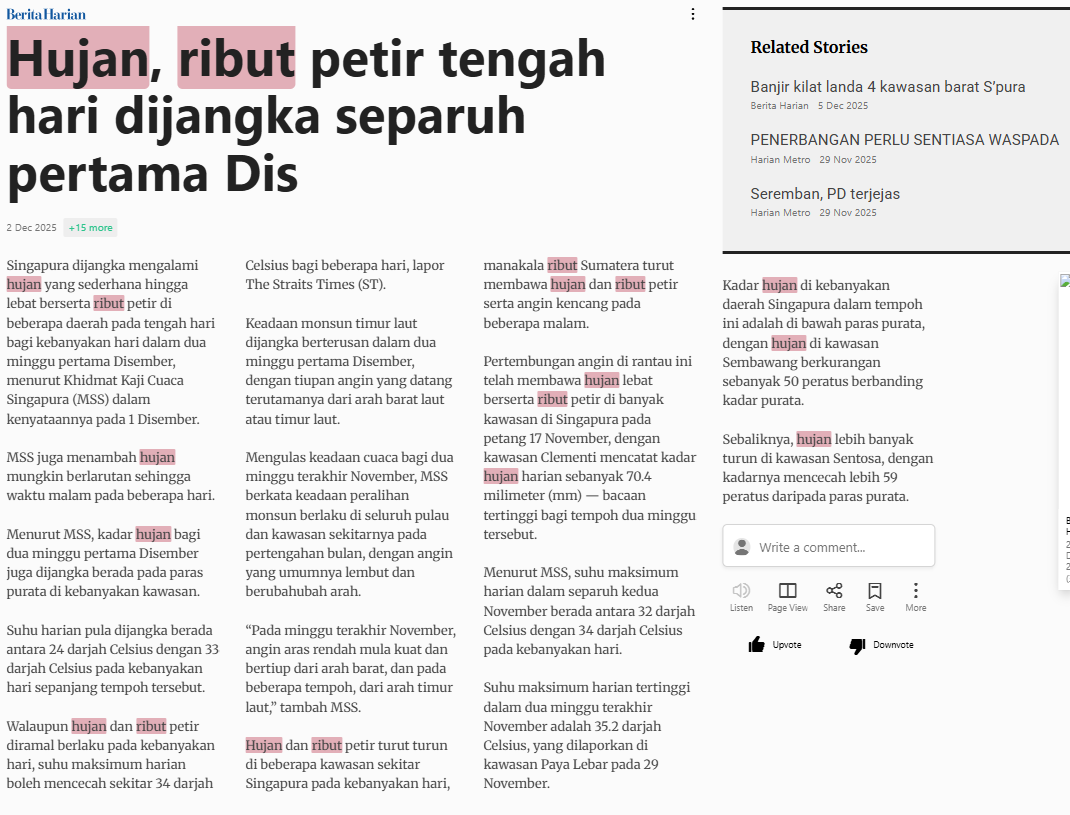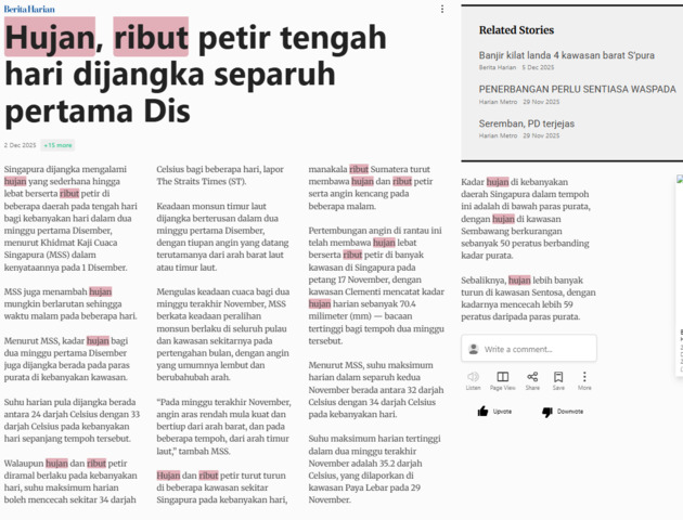 Bernama (2025) Hujan, Ribut Petir Tengah Hari Dijangka Separuh Pertama Dis. Berita Harian. |