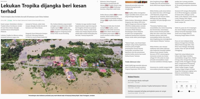 Noor Atiqah Sulaiman and Nurhanim Osman (2025) Lekukan Tropika Dijangka Beri Kesan Terhad. Berita Harian. |
