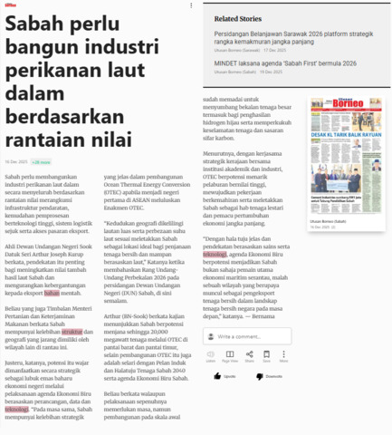 Bernama (2025) Sabah perlu bangun industri perikanan laut dalam berdasarkan rantaian nilai. Utusan Borneo (Sabah). |