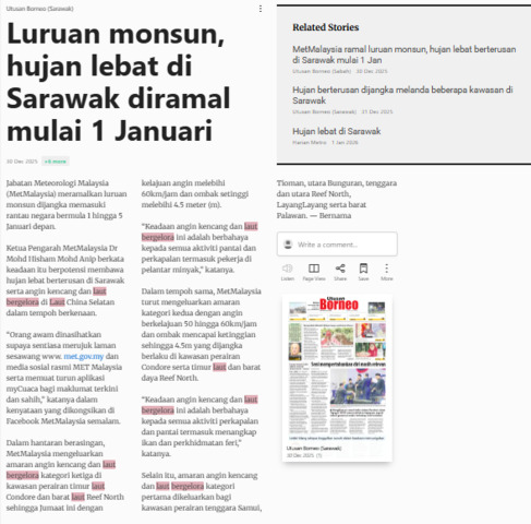 Bernama (2025) Luruan Monsun, Hujan Lebat Di Sarawak Diramal Mulai 1 Januari. Utusan Borneo (Sarawak). |