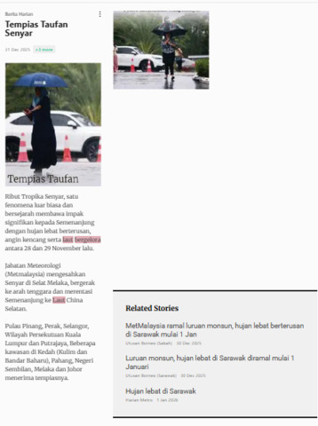 Bernama and Hazira Ahmad Zaidi (2025) Tempias Taufan Senyar. Harian Metro. |