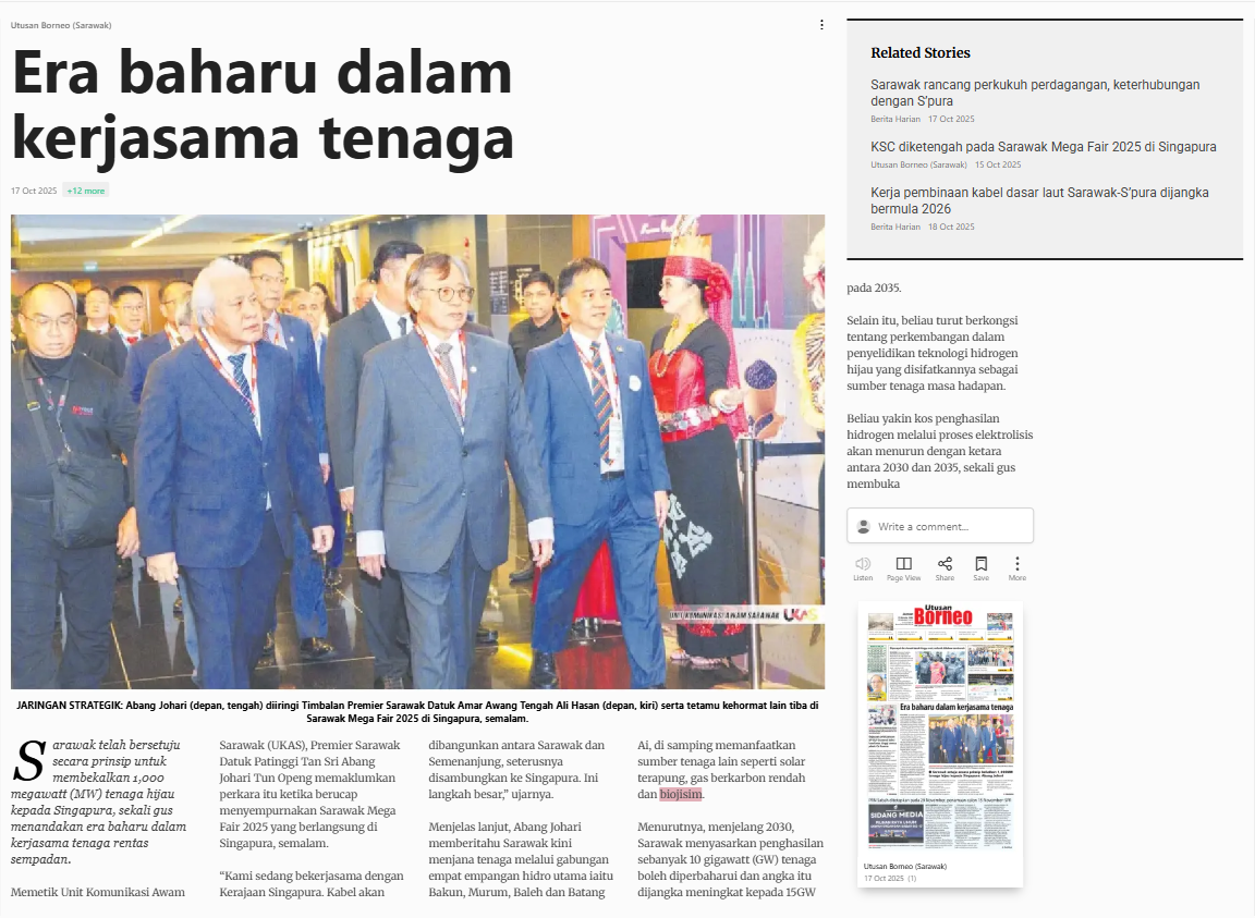 Bernama (2025) Era baharu dalam kerjasama tenaga. Utusan Borneo (Sarawak). |
