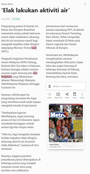 Bernama (2025) Elak Lakukan Aktiviti Air. Harian Metro. |