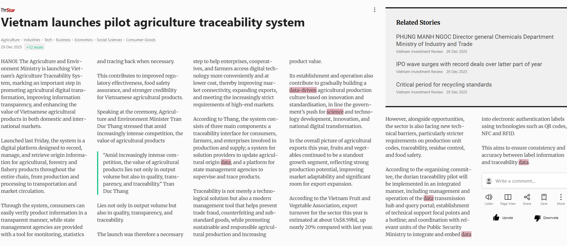 Bernama (2025) Vietnam launches pilot agriculture traceability system. The Star. |