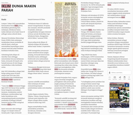 Bernama (2025) Iklim dunia makin parah. Harian Metro. |