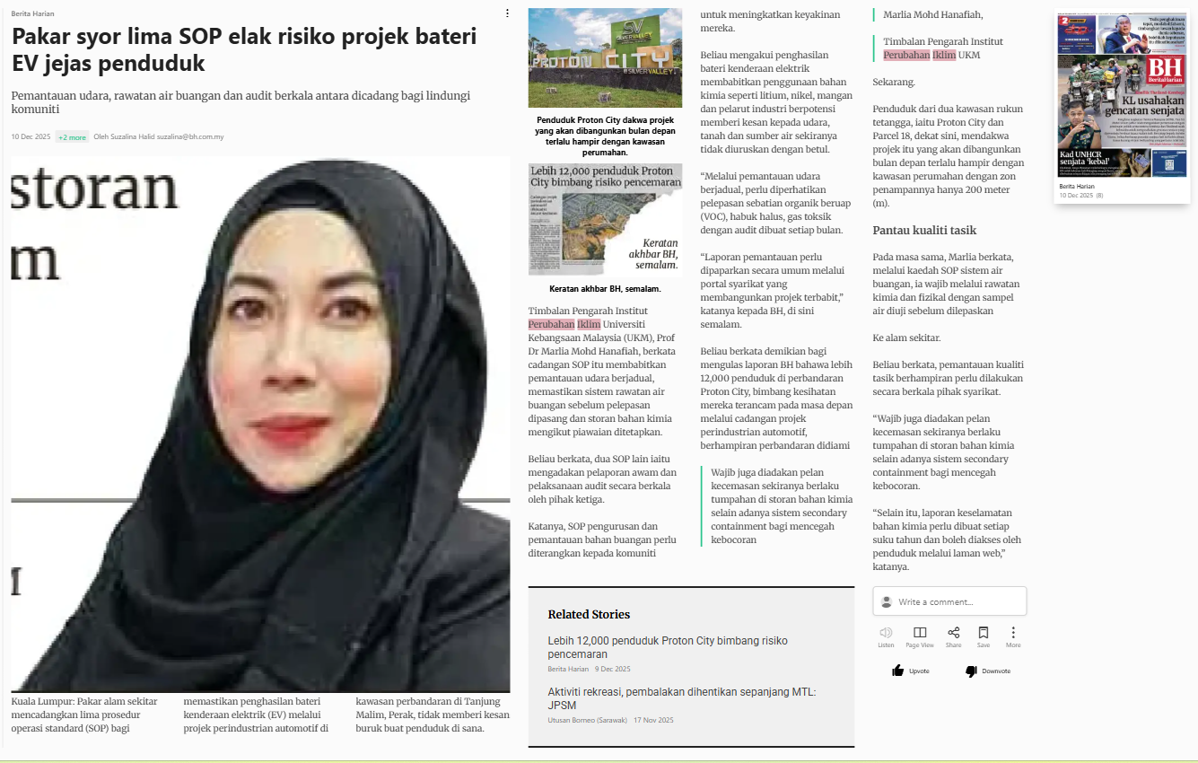 Suzalina Halid (2025) Pakar syor lima SOP elak risiko projek bateri EV jejas penduduk. Berita Harian. |