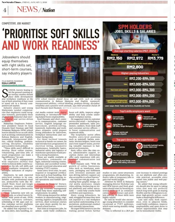Iskandar, Ilya Marsha (2026) Prioritise soft skills and work readiness. New Straits Times. |