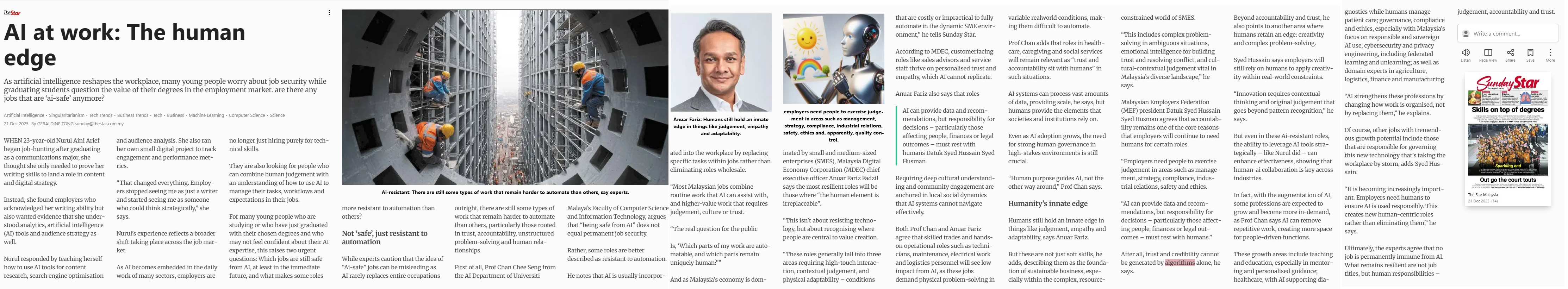 Tong, Geraldine (2025) AI at work ; The human edge. The Star. |