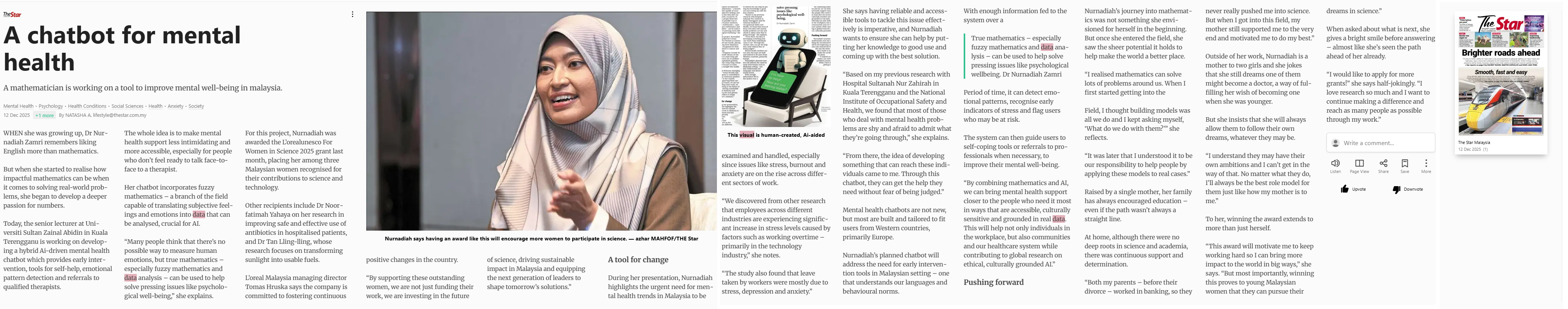 A, Natasha (2025) A chatbox for mental health. The Star. |