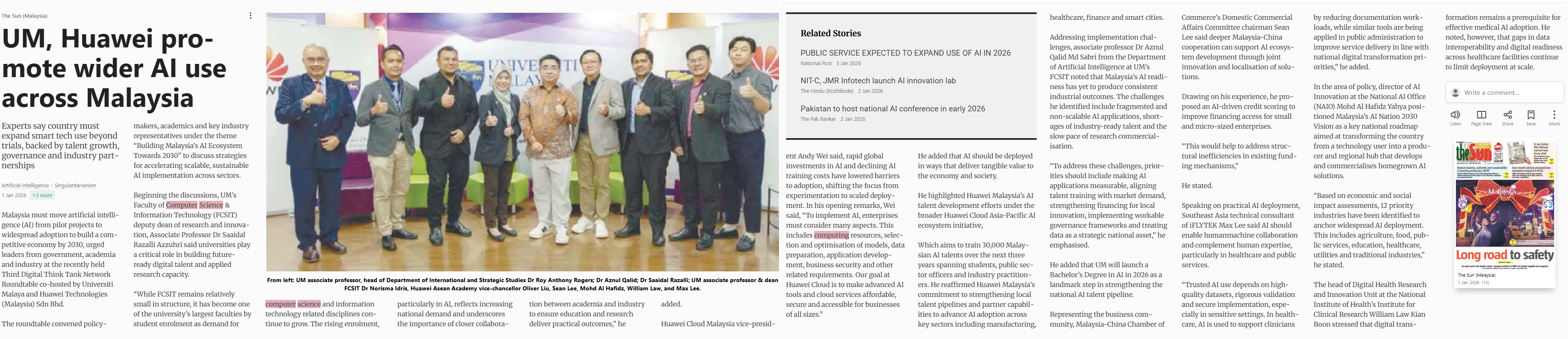 Bernama (2026) UM, Huawei promote wider AI use across Malaysia. The Sun (Malaysia). |