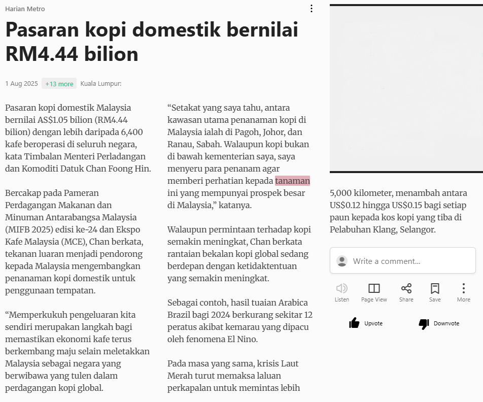 Harian Metro (2025) Pasaran kopi domestik bernilai RM4.44 bilion. Harian Metro. |