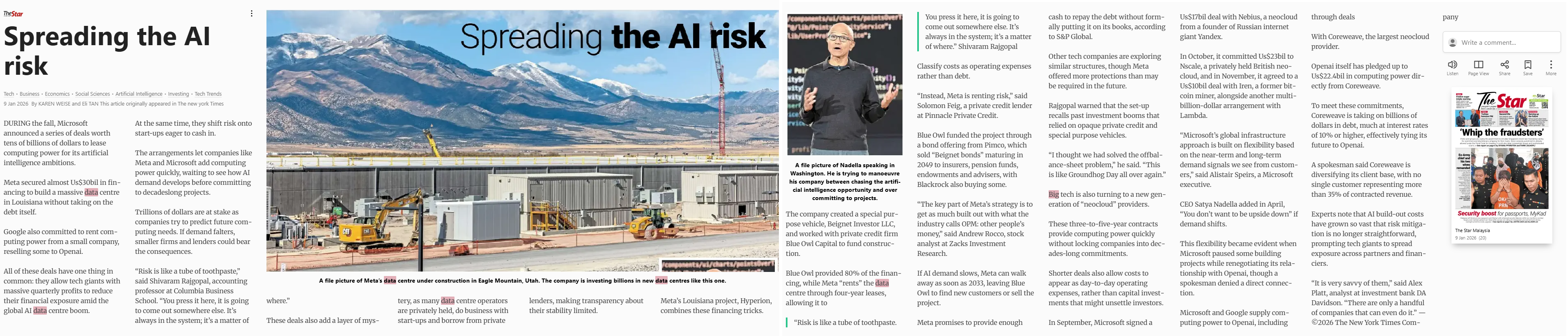 Weise, Karen and Tan, Eli (2026) Spreading the AI risk. The Star. |